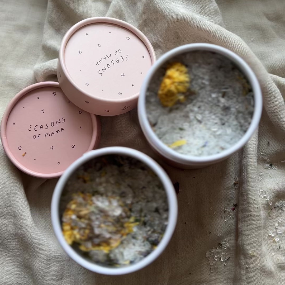 Dieses erholsame Bad ist ideal für die Schwangerschaft, die Zeit nach der Geburt und darüber hinaus und fördert die tiefe Ruhe und Entspannung von Körper, Geist und Seele. Bio-Kräuter und pflanzliche Stoffe werden von Hand mit reinem Ayervedic-Öl für ein nährendes Baderitual gemischt.